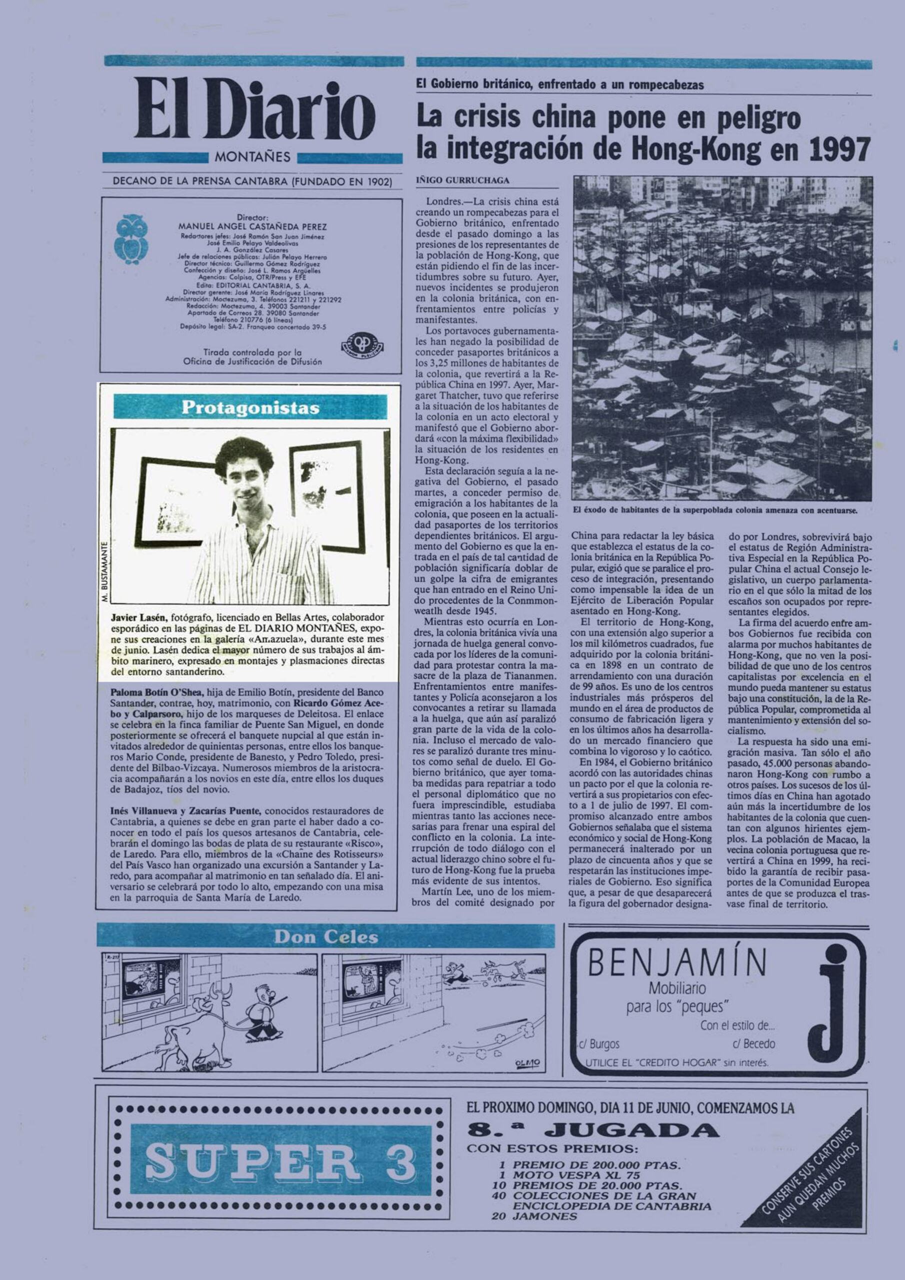 PROTAGONISTAS, Javier Lasén, fotógrafo, licenciado en Bellas Artes, colaborador esporádico en las páginas de EL DIARIO MONTARES, expone sus creaciones en la galería «Amazuela», durante este mes de junio. Lasén dedica el mayor número de sus trabajos al ámbito marinero, expresado en montajes y plasmaciones directas del entorno santanderino.