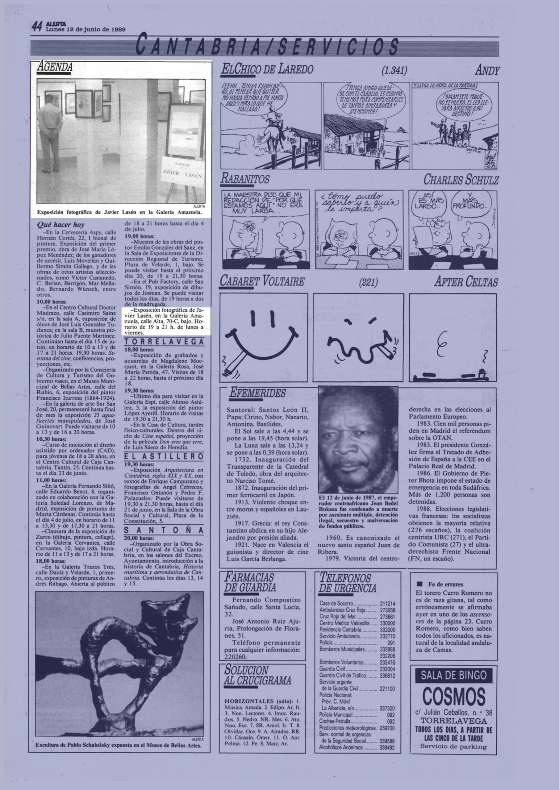 Exposición “Cercano al Mar”, Santander. Junio de 1989.